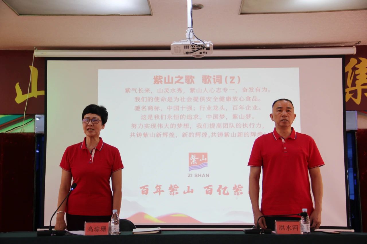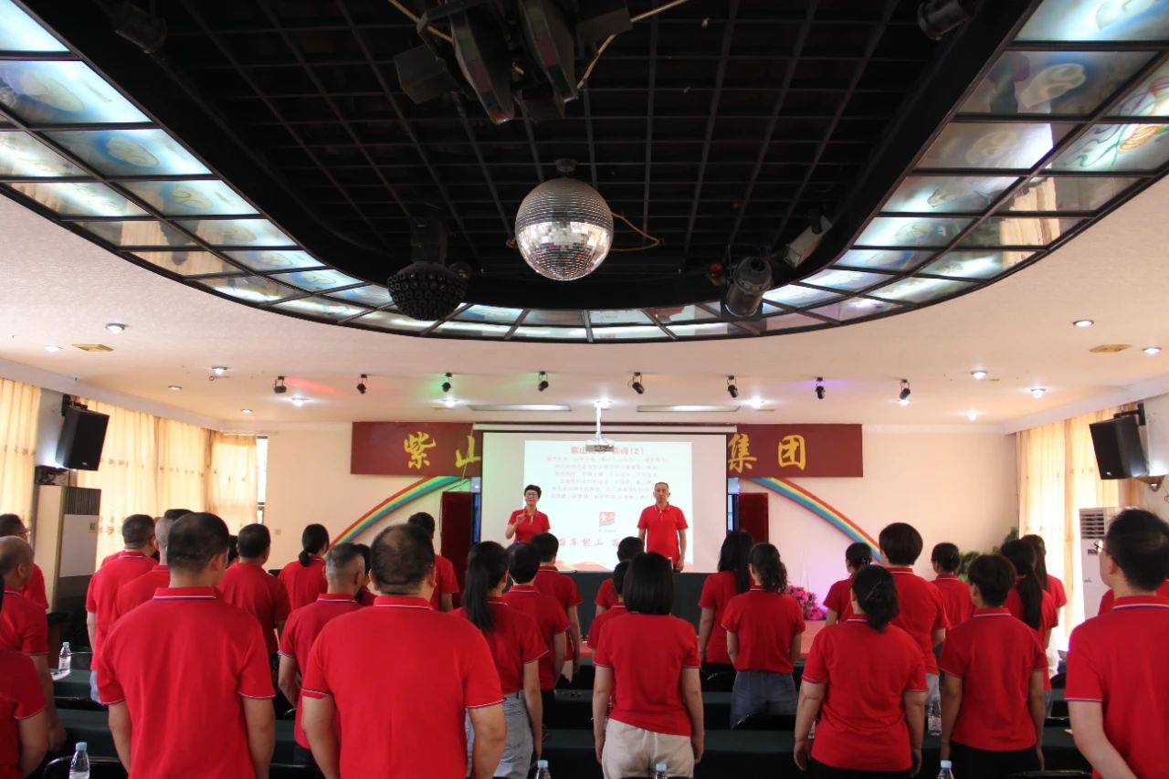 大會在激昂的《紫山之歌》歌聲中拉開帷幕。全體黨員齊聲高唱,嘹亮的歌聲響徹會場,展現(xiàn)出紫山黨員們昂揚(yáng)的斗志和團(tuán)結(jié)一心的精神風(fēng)貌。《紫山之歌》不僅是一首企業(yè)歌曲,更是紫山集團(tuán)在黨的領(lǐng)導(dǎo)下,從無到有、從小到大一路走來的奮斗歷程的生動寫照。