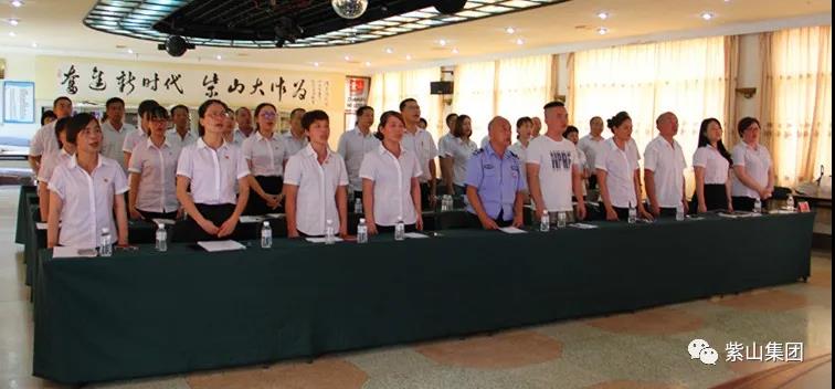 大會(huì)最后,在黨委書記洪水河的帶領(lǐng)下,紫山全體黨員同志莊嚴(yán)地舉起右手,握拳宣誓,重溫入黨誓詞。